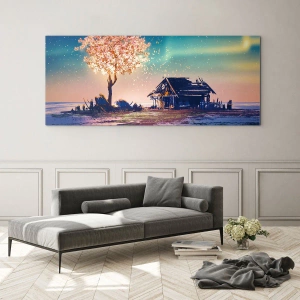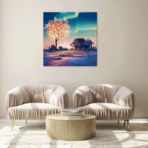 Billedet på glas er lavet af 4 mm tykt glas. Glassets kanter har et mat trapezformet snit. Billedet er sikkert at bruge og klar til at hænge op - der er metalophæng fastgjort på bagsiden af billedet og skumafstandsstykker til at regulere billedets jævne afstand fra væggen.