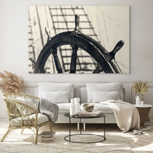 Skibets ratmotiv er et symbol på lederskab, rejser og frihed, hvilket gør dette tryk til en unik tilføjelse til rum designet til at inspirere og motivere. Dens retro-karakter kombineret med moderne håndværk fremhæver interiørets unikke stil.