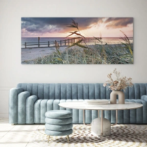 Billedet på glas er lavet af 4 mm tykt glas. Glassets kanter har et mat trapezformet snit. Billedet er sikkert at bruge og klar til at hænge op - der er metalophæng fastgjort på bagsiden af billedet og skumafstandsstykker til at regulere billedets jævne afstand fra væggen.