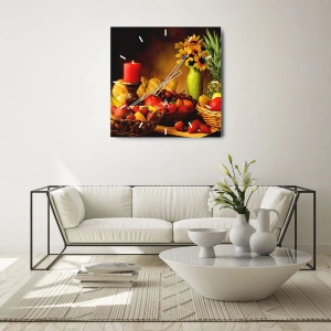 Vægur, Uret - Stilleben med brød og frugt - 40x40 cm