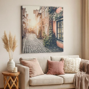 Lærredet er spændt op over rammen. Siderne og kanterne trykkes for at danne en fortsættelse af billedet. Maleriet er klar til at blive hængt op på væggen. Hvert produkt har en bøjle, der er fastgjort til rammen, og et samlesæt (skrue + dyvel).