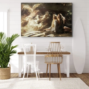 Lærredet er spændt op over rammen. Siderne og kanterne trykkes for at danne en fortsættelse af billedet. Maleriet er klar til at blive hængt op på væggen. Hvert produkt har en bøjle, der er fastgjort til rammen, og et samlesæt (skrue + dyvel).