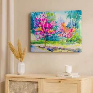 Lærredstryk - Billede på lærred - Regnbuehaven i forårets pragt - 50x70 cm