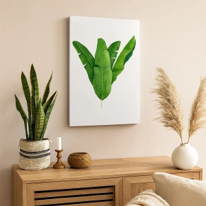 Motivet Green Symmetry er den perfekte dekoration for naturelskere og minimalistiske interiører. Maleriet introducerer en tropisk stil til rummet, inspirerende og beroligende, samtidig med at det understreger den individuelle stil i hvert rum. Det er også en god gaveidé til dem, der sætter pris på originale og diskrete indretningsdetaljer.