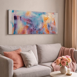 Takket være sin alsidighed vil dette maleri fungere godt i en række forskellige interiører, fra minimalistiske til mere eklektiske. **Pastelfarver** og et abstrakt motiv bringer en balance til rummet, der fremmer afslapning og inspiration.