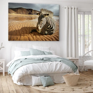 Motivet med zebraen på stranden symboliserer harmonien mellem dyrelivet og roen i kystlandskabet. Det er et perfekt valg for elskere af natur, eksotisme og unikke indretningsdetaljer. Detaljerigdommen og de omhyggeligt gengivne teksturer giver maleriet en realistisk og kunstnerisk dimension.