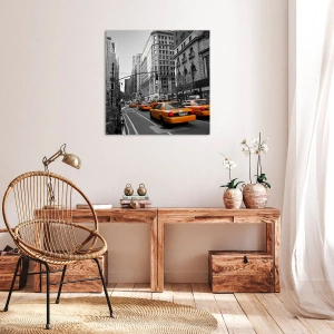 Gule taxaer på New Yorks gader er et fremragende valg for elskere af storbystil og moderne arrangementer. Dette maleri på lærred bringer dynamikken og energien fra byen til interiøret og giver det en unik karakter.