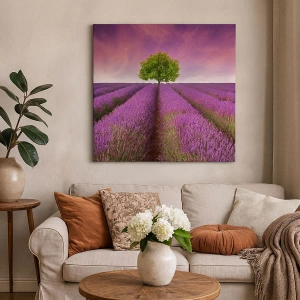 Lærredstryk - Billede på lærred - I lavendelmarker - 30x30 cm
