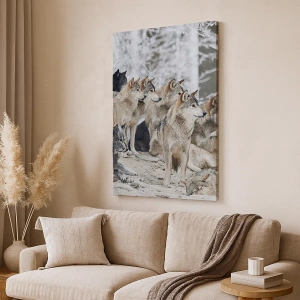 Lærredet er spændt op over rammen. Siderne og kanterne trykkes for at danne en fortsættelse af billedet. Maleriet er klar til at blive hængt op på væggen. Hvert produkt har en bøjle, der er fastgjort til rammen, og et samlesæt (skrue + dyvel).