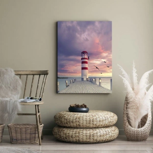 Tid til at gå til havnen er et lærredsmaleri, der transporterer beskueren til det maleriske landskab af en solnedgang ved havet. Fyrtårnet for enden af en træmole skaber en fredelig og romantisk atmosfære, hvor naturen kombineres med subtil elegance. Maleriet begejstrer med sin farveharmoni og kunstneriske udtryk, der bringer fred og inspiration til interiøret.