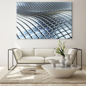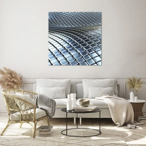 Billede på glas - Abstrakt overflade med skinnende metalkvadrater - 70x50cm - Bølge i metallisk sølv - Moderne vægdekoration til stue og soveværelse ARTTOR