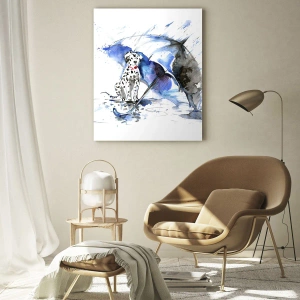 - Denne kunstneriske akvarel forestiller en dalmatinerhund, der sidder ved en paraply i regnvejr. En perfekt dekoration, der vil bringe harmoni og unik stil til ethvert interiør.
