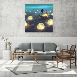 Billedet på glas er lavet af 4 mm tykt glas. Glassets kanter har et mat trapezformet snit. Billedet er sikkert at bruge og klar til at hænge op - der er metalophæng fastgjort på bagsiden af billedet og skumafstandsstykker til at regulere billedets jævne afstand fra væggen.