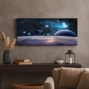 Lærredet er spændt op over rammen. Siderne og kanterne trykkes for at danne en fortsættelse af billedet. Maleriet er klar til at blive hængt op på væggen. Hvert produkt har en bøjle, der er fastgjort til rammen, og et samlesæt (skrue + dyvel).