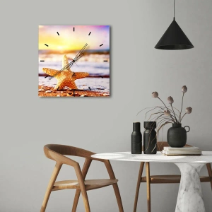Vægur, Uret - Søstjerne på stranden ved solnedgang - 30x30cm - Maritime gave - Moderne vægdekoration til stue, køkken og soveværelse ARTTOR