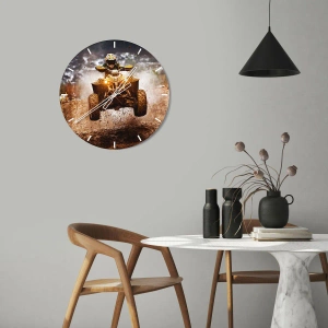Uret er fremstillet af 4 mm tykt sikkerhedsglas. Urets fremstillingsteknologi er i overensstemmelse med sikkerhedsklasse 2B2 i henhold til EN 12600:2004, hvilket garanterer slagfasthed. Uret på glas er klar til at blive hængt op - det har et metalophæng fastgjort på bagsiden af uret og en skumafstandsholder til at regulere urets lige afstand fra væggen. Uret har en lydløs mekanisme, der drives af et 1,5 V - AA-batteri (batteri medfølger ikke).