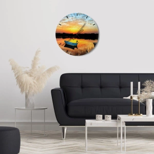 Uret på glas er klar til at hænge på væggen, det er udstyret med en monteret metalophæng for nem montering