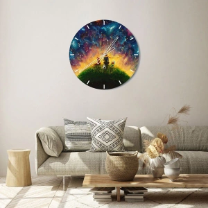 - Et vægur inspireret af samtidskunst med et smukt motiv af kærlighed og venskab. Den farverige himmel og den magiske atmosfære tilføjer en unik karakter til ethvert interiør.