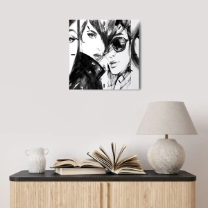Vægur, Uret - To kvindelige silhuetter i en skitseret stil - 30x30cm - Skønhed mangedoblet - Moderne vægdekoration til stue, køkken og soveværelse ARTTOR