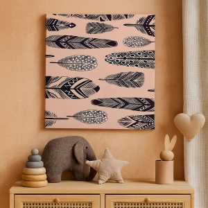 Dekorative fjer på en lys baggrund er det perfekte valg for dem, der værdsætter subtilitet, kunstneriske mønstre og unikke boligtilbehør. Dette motiv er også en inspirerende gave til elskere af kunst og moderne design.