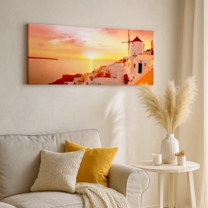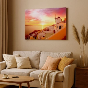 Lærredet er spændt op over rammen. Siderne og kanterne trykkes for at danne en fortsættelse af billedet. Maleriet er klar til at blive hængt op på væggen. Hvert produkt har en bøjle, der er fastgjort til rammen, og et samlesæt (skrue + dyvel).