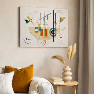 Lærredstryk - Billede på lærred - Farverig abstraktion med geometriske former - 70x50cm - Og verden griner - Moderne vægdekoration til stue og soveværelse ARTTOR