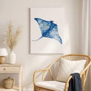 Vægkunst - Livet i blåt - Blå rokke i akvarelstil på hvid baggrund