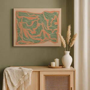 Lærredstryk - Billede på lærred - Et plantemønster i nuancer af grønt og orange - 70x50cm - En kamp mellem koral og grøn - Moderne vægdekoration til stue og soveværelse ARTTOR