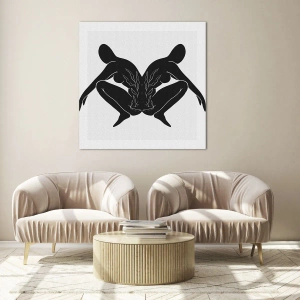 Vægkunst - Shared Soul - Sorte figurer danner et symmetrisk hjerte på en hvid baggrund