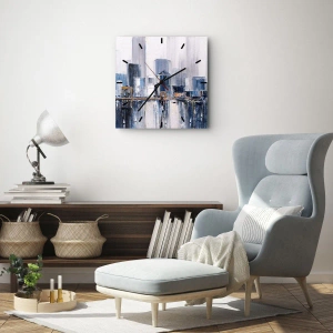 - Dette vægur i glas på 30x30 cm har et malerisk bybillede gengivet i impressionistisk stil. En moderne dekoration inspireret af metropolens urbane rytme og arkitektur.