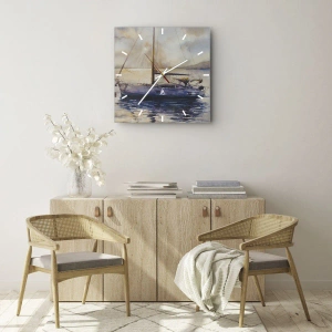 Vægur, Uret - En yacht på vandet ved solnedgang i akvarelstil - 30x30cm - Aften i bugten - Moderne vægdekoration til stue, køkken og soveværelse ARTTOR