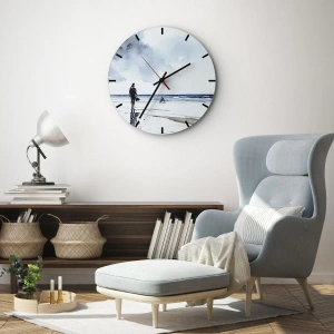 Vægur, Uret - En figur på stranden kigger ud over havet - 30x30cm - Samtale med havet - Moderne vægdekoration til stue, køkken og soveværelse ARTTOR