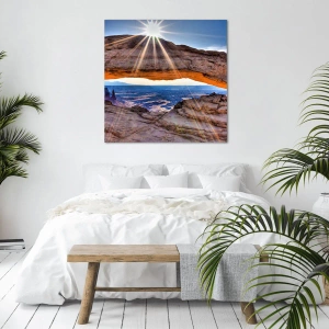 Klippebuemotivet symboliserer naturens holdbarhed og styrke og opfordrer til refleksion over dens kraft. Solstrålerne, der er afbildet i maleriet, tilfører energi og optimisme, hvilket gør det til et ideelt valg for dem, der søger inspiration og fred. Detaljerne i klippeformationerne og panoramaudsigten er realistisk gengivet og afspejler stedets karakter.