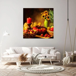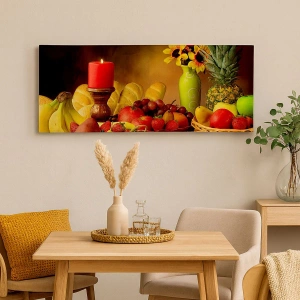 Lærredstryk - Billede på lærred - Stilleben med brød og frugt - 45x80 cm
