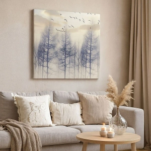 Maleriet "Misty Forest" er mere end bare dekoration – det er et vindue ind i naturens verden og dens sarte nuancer. Hver detalje, fra træernes omrids til fuglene, er raffineret og skaber en komposition fuld af liv og dybde. Dette lærredstryk passer perfekt ind i moderne minimalistiske og skandinaviske trends.