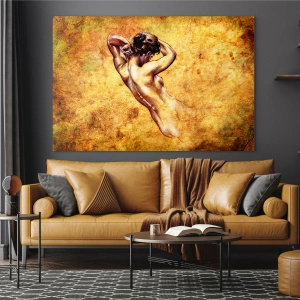 - Dette unikke maleri forestiller en kunstnerisk silhuet af en mand mod en vintage guldtonet baggrund. Et perfekt valg for elskere af kunst og elegance.