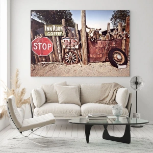 Billedet på glas er lavet af 4 mm tykt glas. Glassets kanter har et mat trapezformet snit. Billedet er sikkert at bruge og klar til at hænge op - der er metalophæng fastgjort på bagsiden af billedet og skumafstandsstykker til at regulere billedets jævne afstand fra væggen.