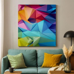 Lærredstryk - Billede på lærred - Farverig geometrisk abstraktion i levende farver - 70x50cm - Regnbue origami - Moderne vægdekoration til stue og soveværelse ARTTOR