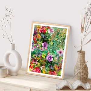 Plakat i ramme af lyst egetræ - Ind i blomsterne ved fortabelse - 50x40 cm