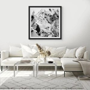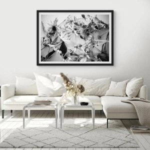 Plakat i sort ramme - Sorte og hvide blomster arrangeret i et kunstnerisk arrangement - 50x70cm - Blomster uden buket - Moderne vægdekoration til stue og soveværelse ARTTOR
