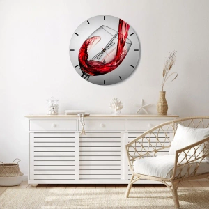 Farve - Bevægelse - Lyd er et elegant vægur, der bringer sofistikering og harmoni til dit interiør. Motivet forestiller et glas rødvin, der hældes op, hvilket tilføjer dynamik og unik karakter til kompositionen. Det er den perfekte dekoration for dem, der værdsætter luksus, smag og æstetik.