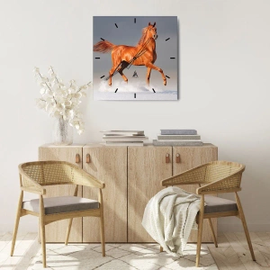Vægur, Uret - En galoperende hest med kastanjebrun pels mod en lys baggrund - 30x30cm - Dansende ynde - Moderne vægdekoration til stue, køkken og soveværelse ARTTOR