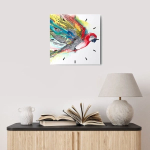Uret er fremstillet af 4 mm tykt sikkerhedsglas. Urets fremstillingsteknologi er i overensstemmelse med sikkerhedsklasse 2B2 i henhold til EN 12600:2004, hvilket garanterer slagfasthed. Uret på glas er klar til at blive hængt op - det har et metalophæng fastgjort på bagsiden af uret og en skumafstandsholder til at regulere urets lige afstand fra væggen. Uret har en lydløs mekanisme, der drives af et 1,5 V - AA-batteri (batteri medfølger ikke).