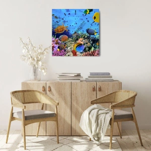 Vægur, Uret - Undervandsverden med skildpadde, fisk og koralrev - 30x30cm - Og hvad ved vi om livet... - Moderne vægdekoration til stue, køkken og soveværelse ARTTOR