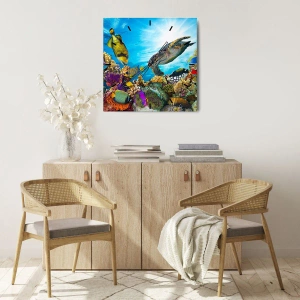 Vægur, Uret - Undervandsverden med koralrev, fisk og havskildpadde - 30x30cm - Koralpromenade - Moderne vægdekoration til stue, køkken og soveværelse ARTTOR