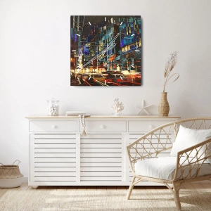 Vægur, Uret - Aftenens travlhed på gaden - 40x40 cm