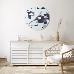Uret er fremstillet af 4 mm tykt sikkerhedsglas. Urets fremstillingsteknologi er i overensstemmelse med sikkerhedsklasse 2B2 i henhold til EN 12600:2004, hvilket garanterer slagfasthed. Uret på glas er klar til at blive hængt op - det har et metalophæng fastgjort på bagsiden af uret og en skumafstandsholder til at regulere urets lige afstand fra væggen. Uret har en lydløs mekanisme, der drives af et 1,5 V - AA-batteri (batteri medfølger ikke).