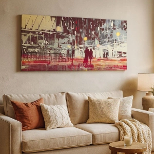 Natbymotivet er fuld af liv og bevægelse. Silhuetter af mennesker på gaden og de omgivende lys skaber en harmonisk komposition, der introducerer en atmosfære af modernitet og urban stil. Maleriet er perfekt til indretning i en stue, et kontor eller et kunstnerisk rum og tilføjer energi og unik karakter.