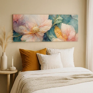 Lærredstryk - Billede på lærred - Delikate blomster i pastelfarver - 70x50cm - Subtiliteten selv - Moderne vægdekoration til stue og soveværelse ARTTOR