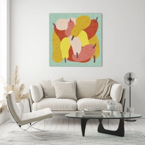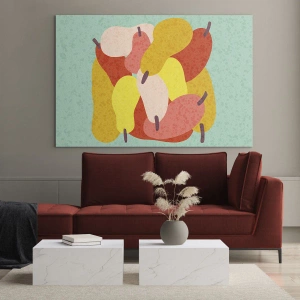 Billede på glas - Farverige pærer i grafisk stil på turkis baggrund - 70x50cm - Smag på sommersolen - Moderne vægdekoration til stue og soveværelse ARTTOR